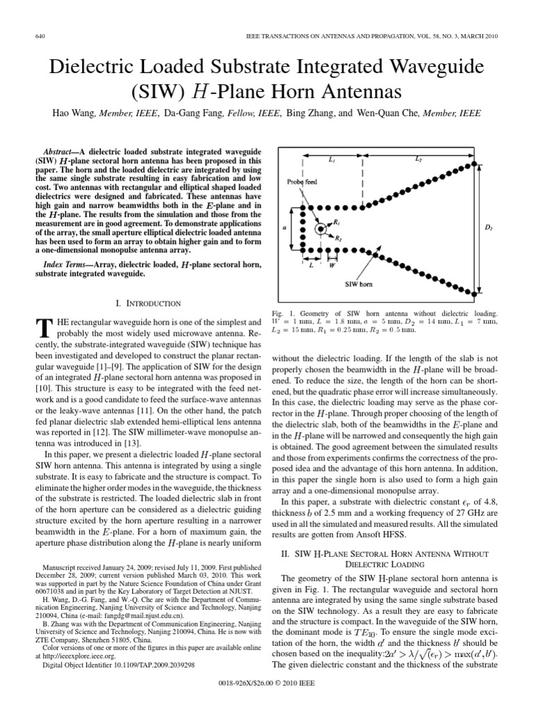 Dielectric Loaded Substrate Integrated Waveguide (SIW) H-Plane Horn Antennas | Antenna (Radio) | Broadcast Engineering